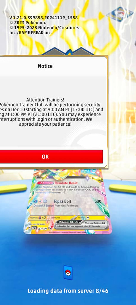 Pokémon TCG Live will be offline for maintenance from 16:00 ~ 24:00 (UTC) on January 27, 2026.