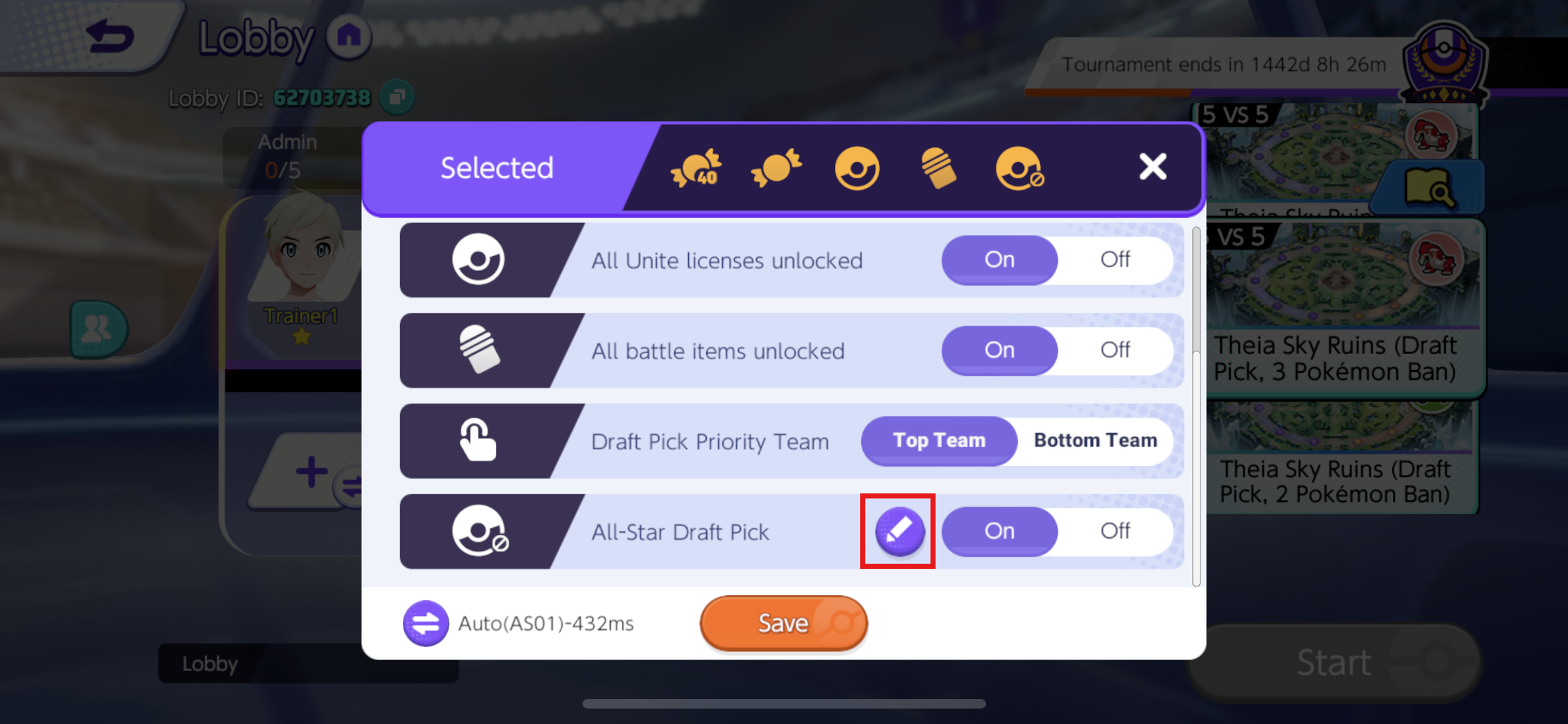 - You can now enable All-Star Draft Pick in tournaments! This will heighten the need to strategize in each match!