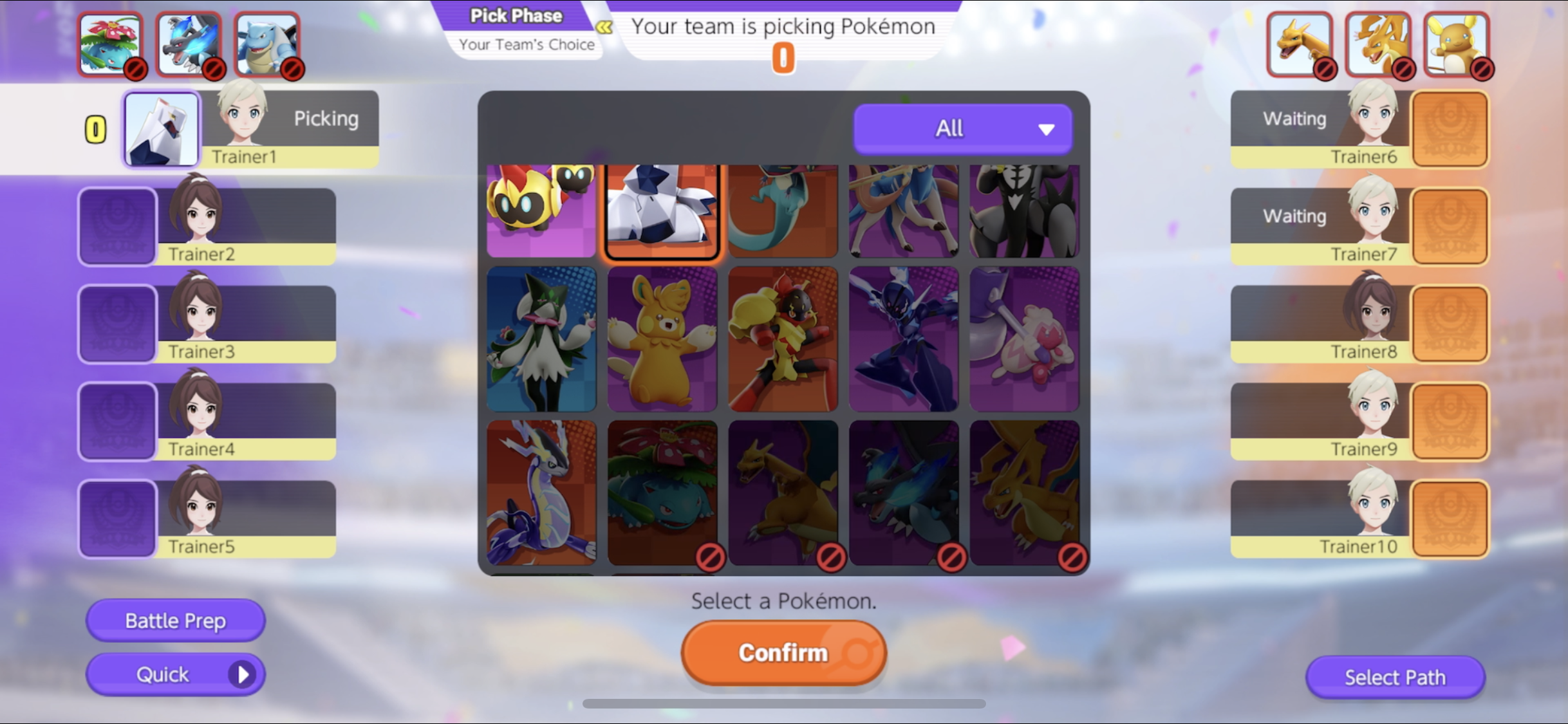The 10 Pokémon used in a match cannot be selected by either team during both the Ban and Pick phases of subsequent matches. Example: At the start of Game 3, the 20 Pokémon used in Games 1 and 2, plus the 6 Pokémon newly banned for Game 3, will result in 26 unselectable Pokémon.